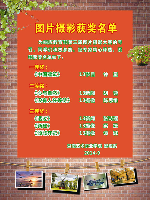 影视系第二届“我的中国梦.最美中国”剧本创作及图片摄影大赛获奖名单