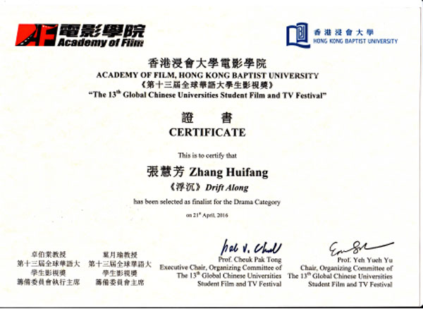4月21日,第13届“全球华语大学生影视奖”颁奖典礼在香港举行,由我院影视系选送的微电影《浮沉》、纪录片《芦苇人》分别获得剧情类、纪录片类“优秀入围奖”。
