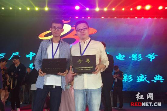 刚刚从第25届金鸡百花电影节微电影展映单元及第5届国际大学生微电影盛典现场走出的张睿(右)与陈增灿。
