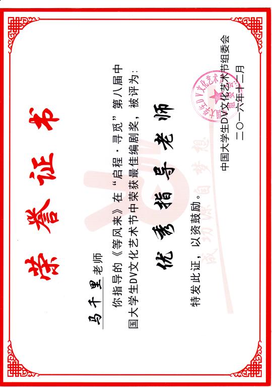 微电影《等风来》荣获第八届中国大学生DV文化艺术节“最佳编剧奖”