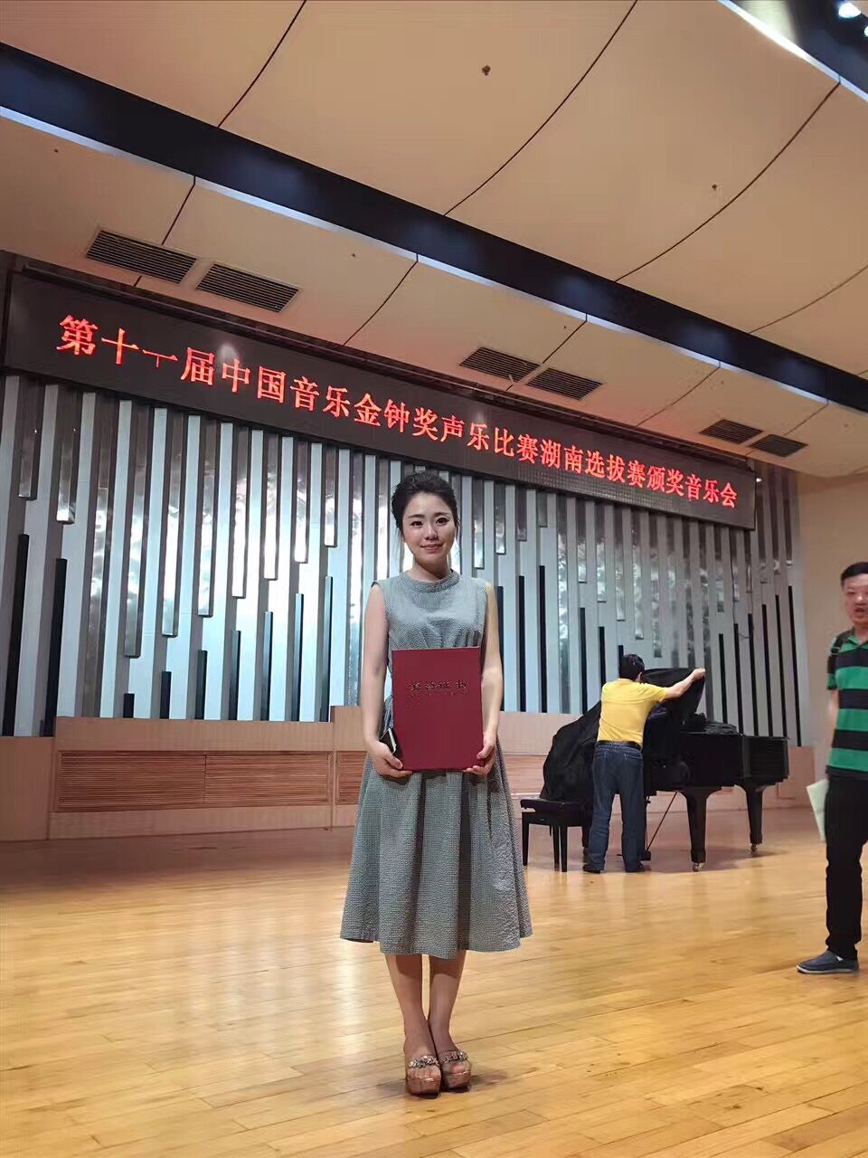 我系熊曼旋老师在中国音乐金钟奖声乐比赛湖南选拔赛中获铜奖