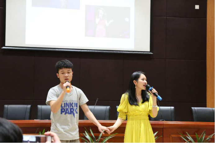 唐丽丽主要分享了自己当初在艺校求学的经历以及自己走上工作岗位后奋斗的历程。她从感恩,坚持,机遇等三个方面引入,勉励学弟学妹们一旦认定目标,就要不忘初心,为之不懈奋斗,只有如此才有机会实现自己的艺术梦想。讲座中,唐丽丽现场与学弟学妹们互动,对唱了《月亮代表我的心》《我只在乎你》等歌曲,把全场气氛带向高潮。