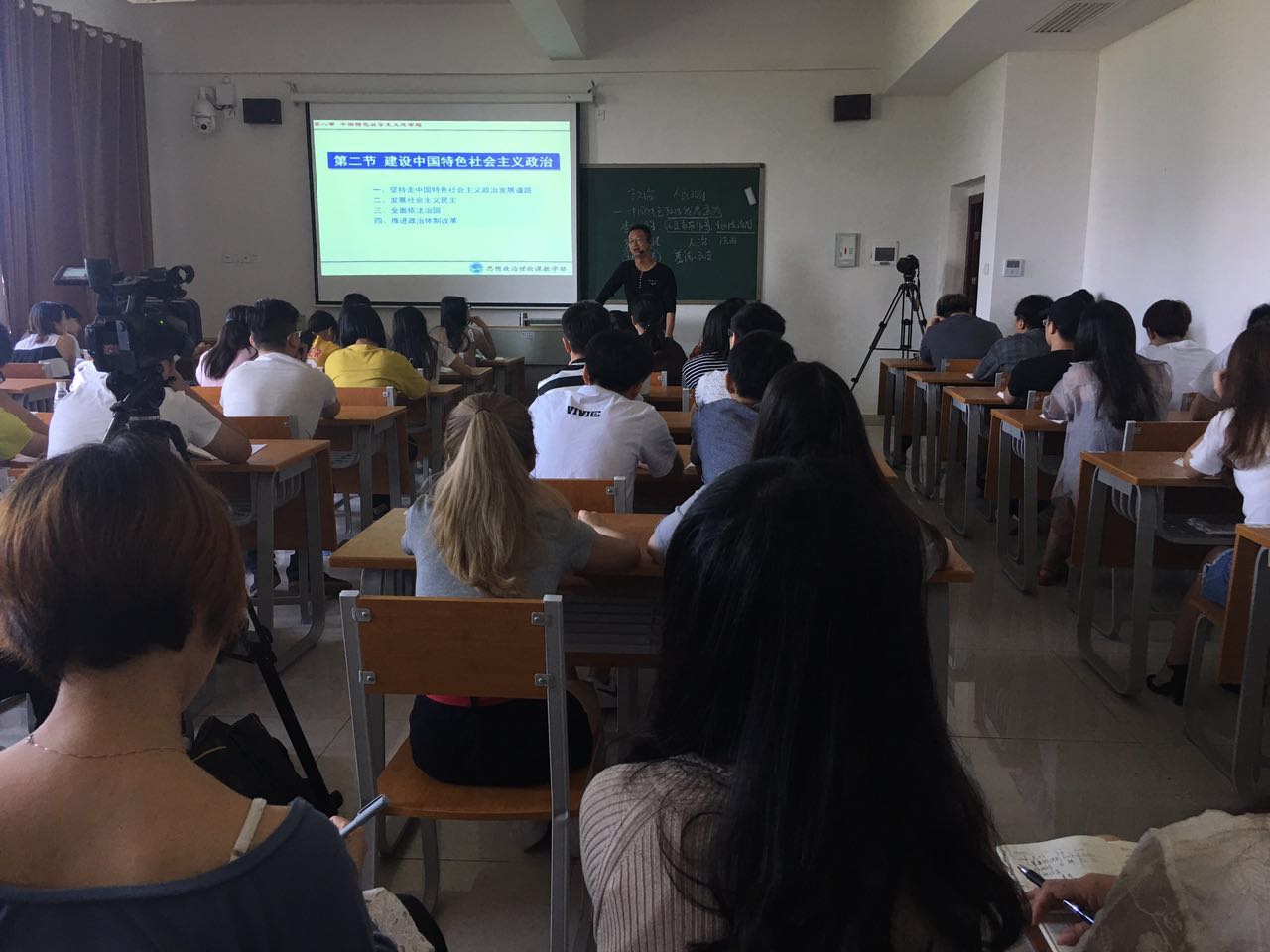 这堂公开示范课由彭朝阳教授主讲,授课内容为建设中国特色社会主义政治。彭教授以学生课前微讲演活动引入“政治”这一核心概念,再以韩国纪录片视频《超级中国》启发学生中国特色社会主义政治建设的正确道路。使对政治处于迷茫中的高职学生很快进入学习情境中。彭教授经典的事例、大道理浅讲解的教学方式,充分调动了学生政治学习的积极性。课堂上,师生互动良好,同学们主动交流,积极发言,课堂气氛活跃。课后,老师们进行了交流,对彭教授驾驭课堂教学的能力给予了高度评价。
