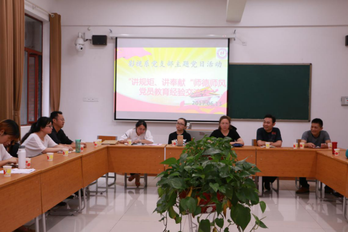 6月13日下午,我系党支部在文化楼进行以“讲规矩、讲奉献”师德师风建设为主题的党日教育活动。 影视系党支部书记许丽英主持活动,全体党员参加。