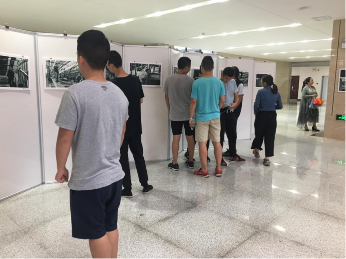 学生们观摩摄影展