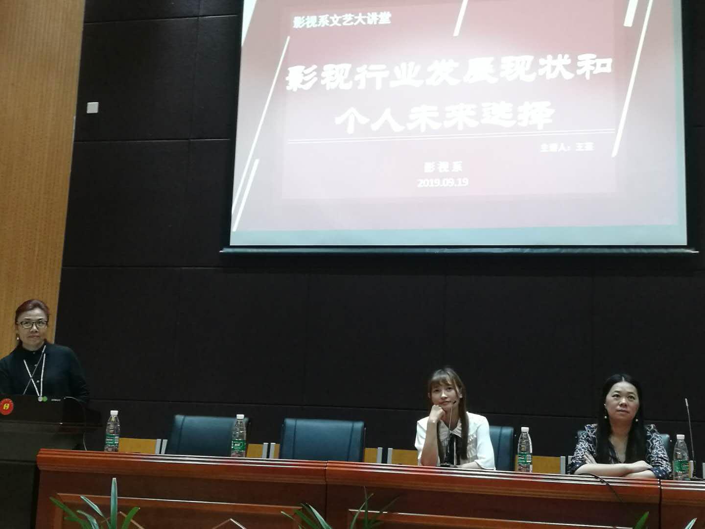 翟清首先对主讲人王芸女士做了简短的介绍。王芸女士曾就读于影视系99级影视表演班,现就职于由腾讯文学与原盛大文学整合而成大型上市公司阅文集团并担任版权开发总经理一职,曾带领团队实现《全职高手》《斗破苍穹》《择天记》等众多知名IP在动漫、影视、衍生品等产业的成功拓展。她从自身工作经历出发,结合影视及相关行业的发展现状,围绕“如何在事业上自我实现”这个问题,以学长的身份向在座的同学们给出了诚意满满的意见和建议。作为特邀嘉宾的达达影业创始人陈静女士也现场畅谈自己就业创业的心路历程。