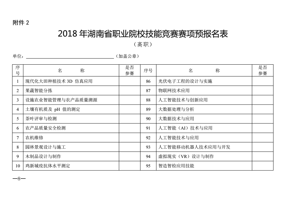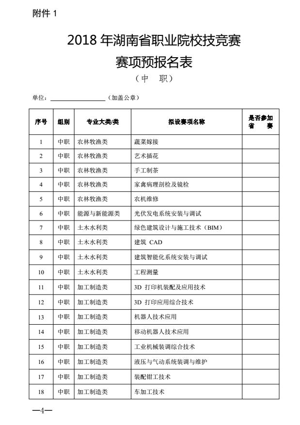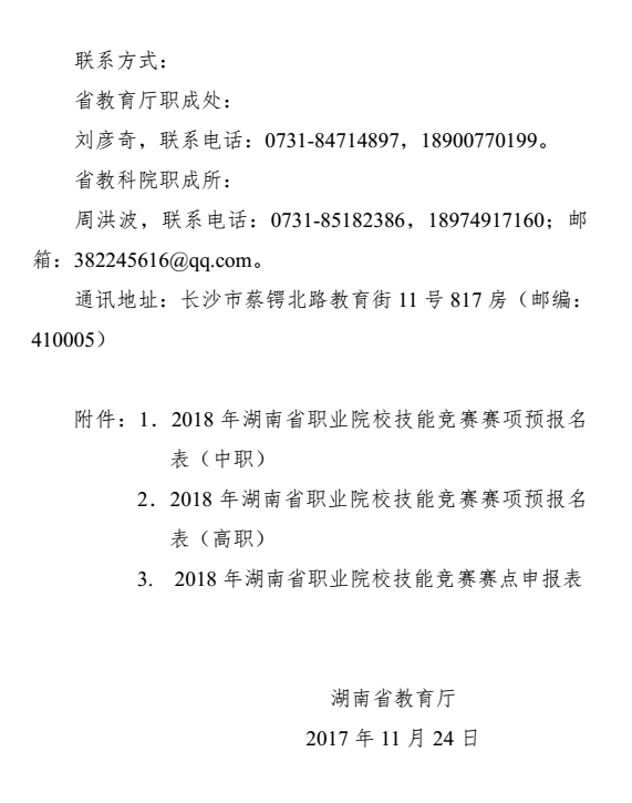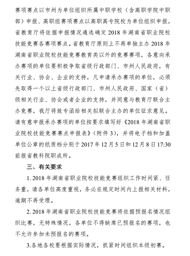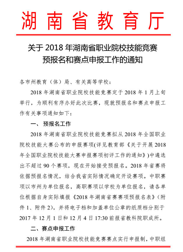 转发《关于2018年湖南省职业院校技能竞赛预报名和赛点申报工作的通知》
