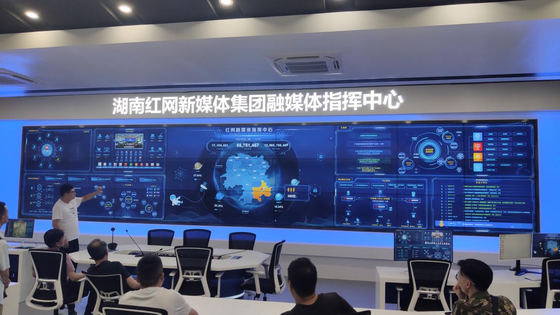 考察组先后参观了虚拟演播室、监控中心、演播厅、融媒体指挥中心,观看了红网集团宣传片,详细了解了红网融媒体指挥中心的云平台操作、数据采编、运营管理、技术结构等问题,并进行了专题座谈交流。