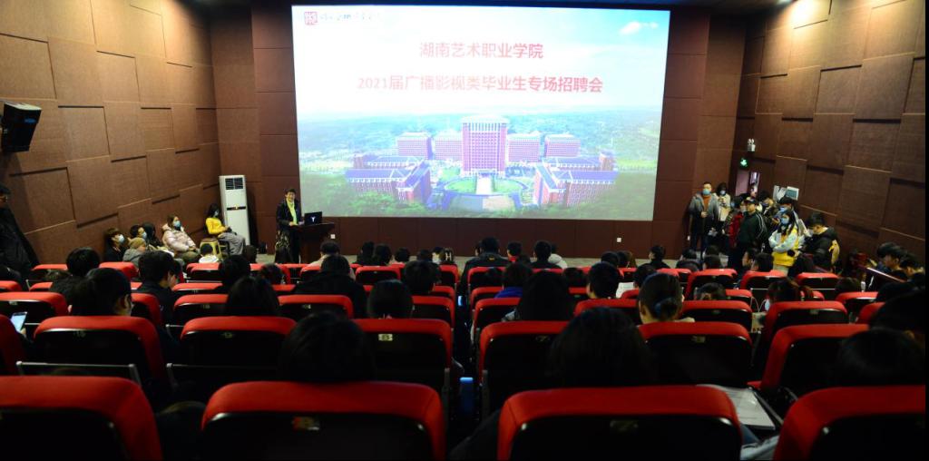 本次影视系招聘会的举办是我院首次以专业系作为牵头单位开展的用人单位与毕业生的双选会,共提供岗位数1482个,同时,为确保原建档立卡户毕业生顺利完成择业、就业等工作,在本次招聘会的前期准备工作上还特意为李前胜、姜少艾等21名2021届原建档立卡户毕业生提供了百余个专业对口的工作岗位。招聘活动共分为企业宣讲及企业和毕业生双选招应聘两个环节。芒果TV等20家在业内享有较高知名度的招聘单位,在4K放映厅逐一对公司概况、职业方向、岗位需求、发展前景向毕业生进行了详细介绍,进一步加强了毕业生对用人单位的充分了解。