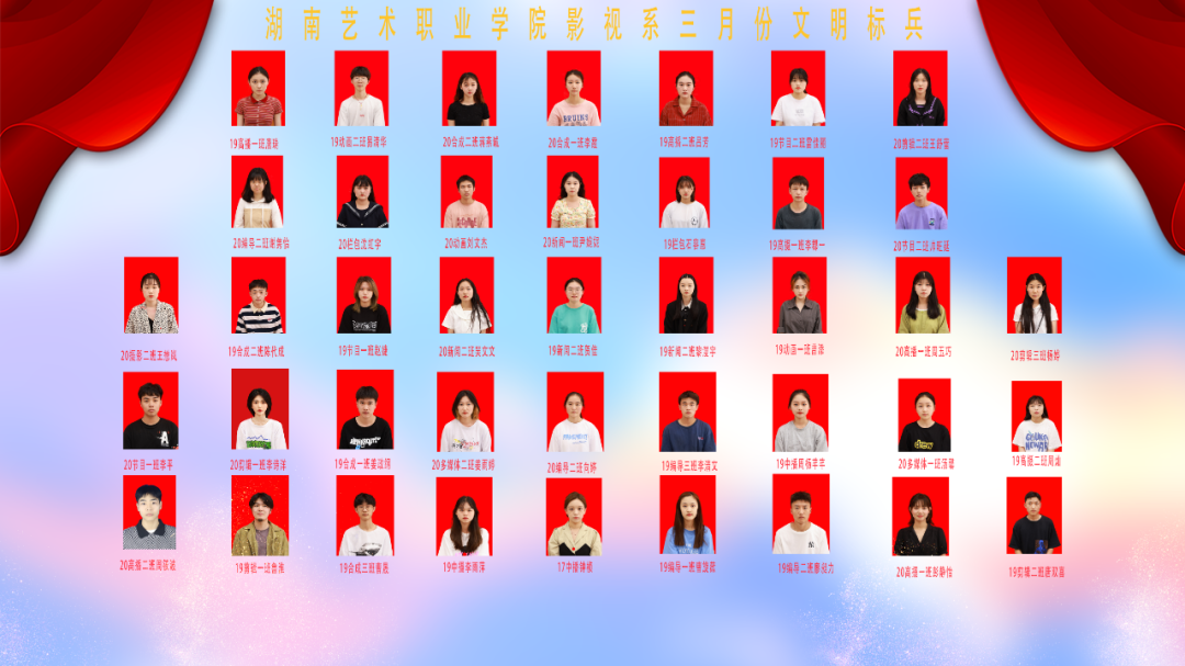 一年之计在于春,在这个万物复苏的季节,我们又开始了的一段新的征程,在和同学们风雨同舟的旅途中,我们也在不断地为追求自己的梦想而奋斗,拼搏,希望能在硕果丰收的日子里,赢得一份属于自己的果实。这不,在我们影视系就有这样一群人,他们通过自己的努力,在百花盛开的春天里,也赢得了属于他们的一丝花香。下面就来跟小影一起看看这些“春天的小可爱”吧——三月份学习标兵。