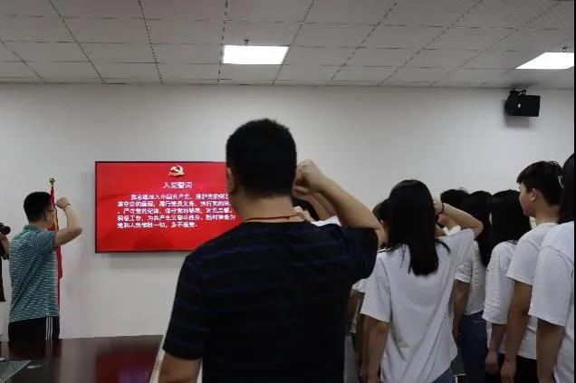 活动中,张睿主任带领党员教师及学生党员高举右手,重温入党誓词,铿锵有力的宣誓声久久回荡。