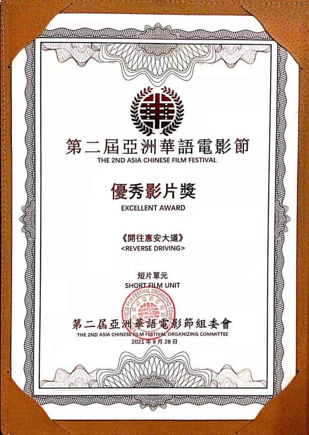 2021年11月17日,第三届香港国际青年电影节组委会、第二届亚洲华语电影节正式公布了本届大赛主竞赛单元获奖名单。经过激烈的角逐,由我院影视系曹琰老师指导,2018级学生黄钾奥凯、张霄毓、叶玉寒、何亮等同学创作的“抗疫微电影”——《开往惠安大道》,在亚洲地区共计981部参赛作品中脱颖而出,成功夺得第二届亚洲华语电影节短片单元优秀影片奖。
