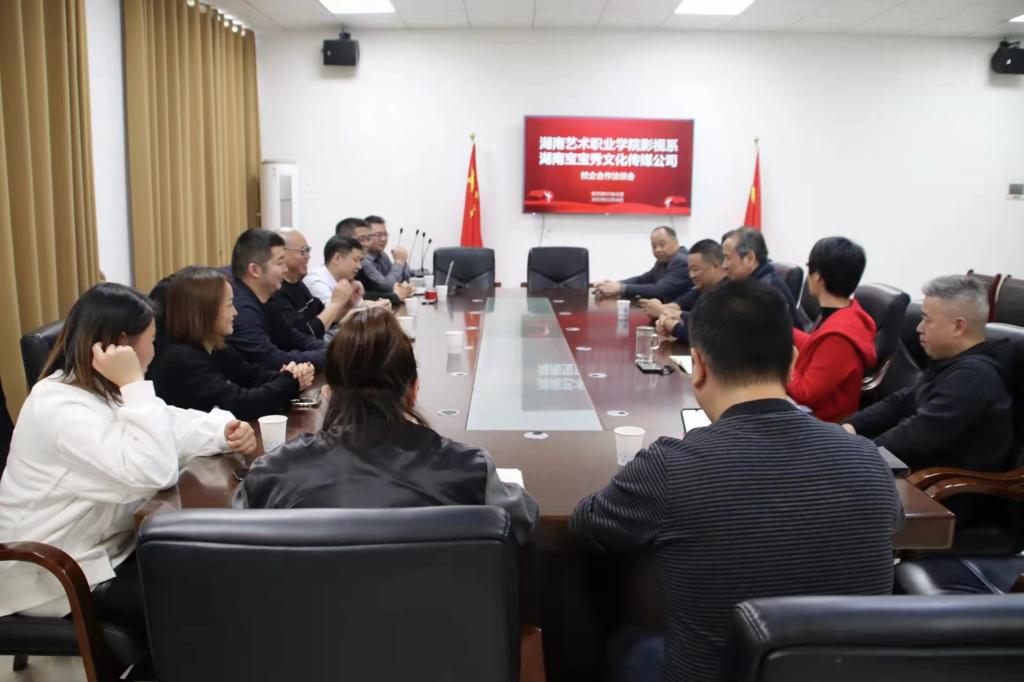 最后,谢方总结道:影视系与宝宝秀公司开展合作,是贯彻落实我省“三高四新”和文化强省战略的具体体现,是服务媒体产业教育、服务社会经济发展和助力乡村振兴的实际行动。宝宝秀公司在短视频创作、直播带货、真人秀业务、市场运作和资本上具有优势;影视系拥有场地、学生、师资和科研优势,能在网络直播与运营专业人才培养上、短视频制作上提供服务。双方互融互通,实现教学更加密切联系企业实际、企业人才素质得到进一步改善。同时影视系还可以在宝宝秀公司的企业发展、技术创新和风险控制方面提供咨询,助推宝宝秀公司管理更优、发展更快、效益更好。我相信在张焰董事长领导下,宝宝秀公司不仅是湖南的驰名公司,而且将是中国的著名企业。我们期待早日携手同行,共创事业辉煌。