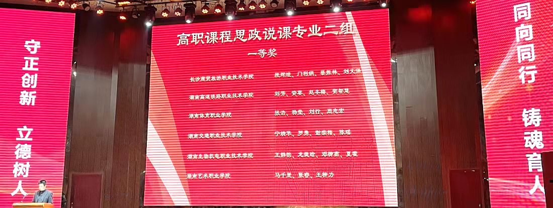 2021年12月11日,由湖南省教育厅主办的2021年湖南省职业院校教师思想政治教育教学能力比赛现场决赛落下帷幕。此次“课程思政说课”赛项有近万名教师参加,142支队伍532名选手现场进行现场说课,是赛事举办以来参与人数最多、现场比赛规模最大的一次教学比拼。学院影视系选送的马千里、张睿、王柳力团队在激烈的比赛中脱颖而出,荣获高职“课程思政”说课赛项一等奖,这是学院自参加该项赛事以来获得的最好成绩。