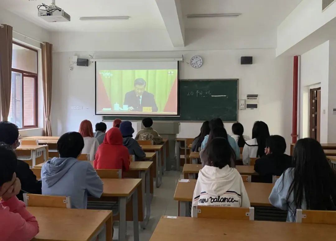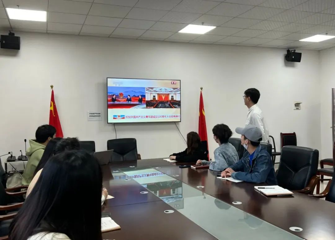 为学习贯彻新思想,于历史中汲取前进力量,5月10日10点,影视系团总支书记马啸组织团学会学生代表于臻艺楼810会议室观看“庆祝中国共产主义青年团成立100周年大会”直播实况,同时组织各团支部于教室观摩学习习近平总书记重要讲话精神。