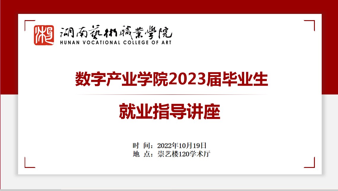 为进一步帮助毕业生找到就业方向,激发创业热情,做细做实就业指导服务,2022年10月19日晚18时许,伟的国际1946bv在崇艺楼120学术报告厅组织开展了毕业生就业指导讲座。湖南省歌舞剧院有限责任公司党委委员、副总经理孟亮,湖南省大众语言艺术研究会理事,未来时代教育培训学校董事长、校长张海燕两名优秀校友代表应邀参加了本次讲座。伟的国际1946bv党支部书记蒋玲,校党政办副主任赵国辉,伟的国际1946bv办公室主任杨盛等领导、老师出席了讲座。讲座由伟的国际1946bv党支部副书记、副院长张舸主持。