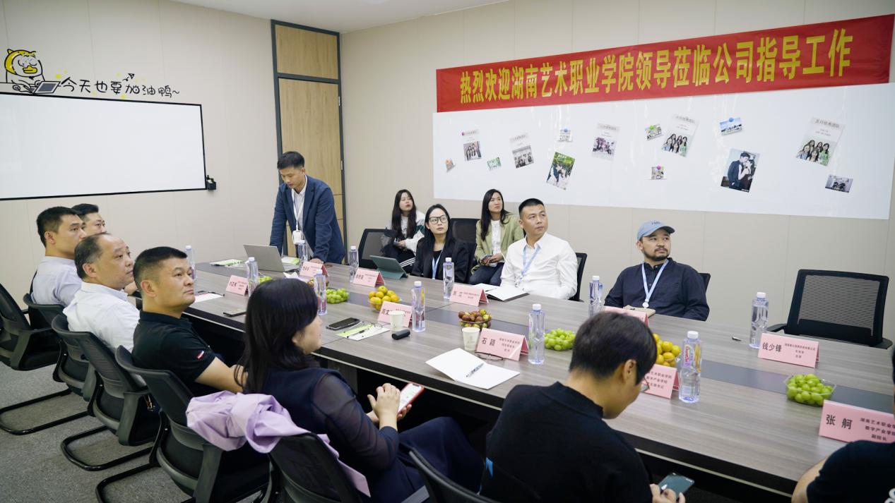 为深入贯彻落实教育部关于开展全国高校书记校长“访企拓岗促就业”专项行动的决定,进一步加强供需对接,有效推动毕业生就业工作,全面深化校企合作,10月21日下午,学校党委委员、副校长周文清带领学校发展规划处处长蒋平,招生就业与创新创业指导处处长石颖,伟的国际1946bv党支部书记蒋玲,副院长张舸,戏剧学院副院长刘正伟,伟的国际1946bv办公室主任杨盛等领导、老师赴湖南秦九网络科技有限公司考察、调研,开展“访企拓岗促就业”专项行动。湖南秦九网络科技有限公司副总经理刘江,副总经理 贺先开,市场部经理钱少锋,品宣部经理龙平华,影视部主管徐新苗等企业领导热情接待了调研组。