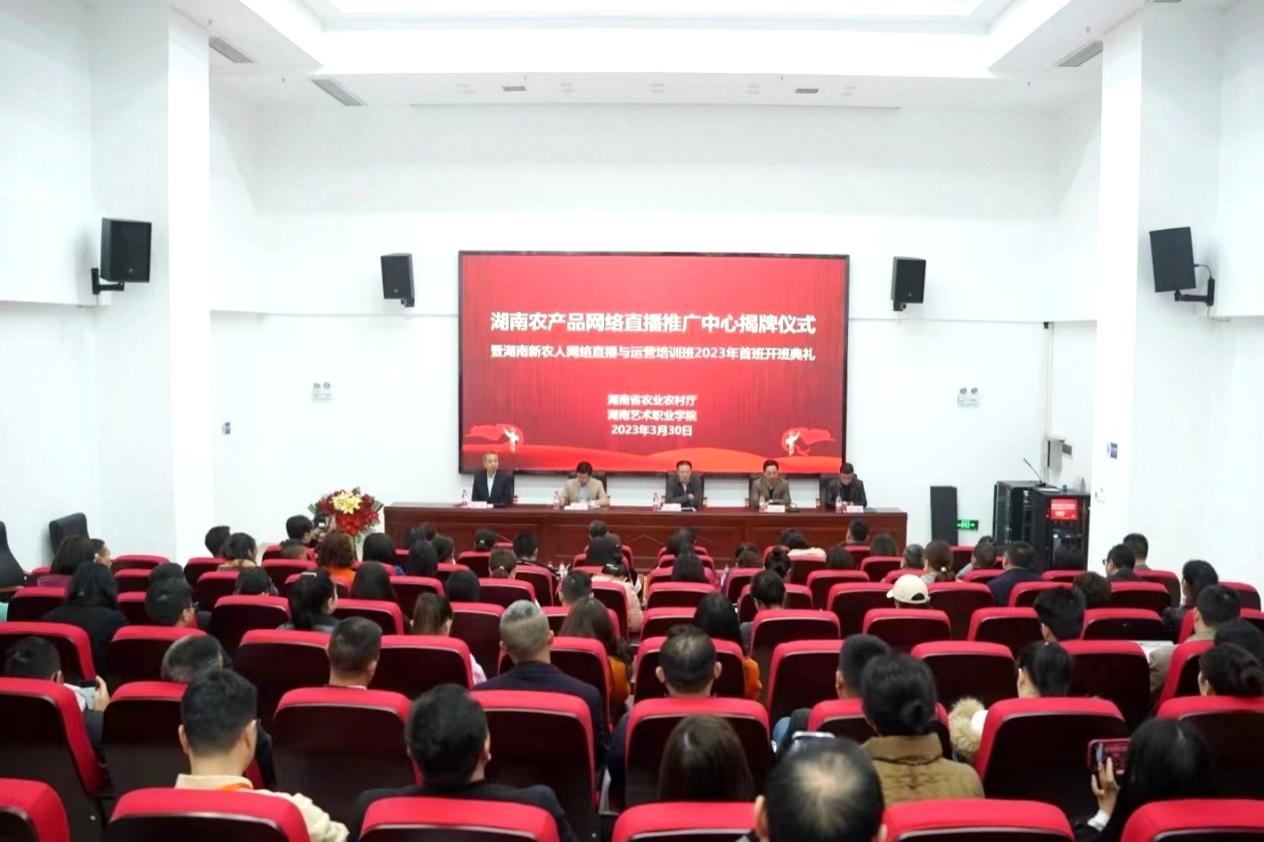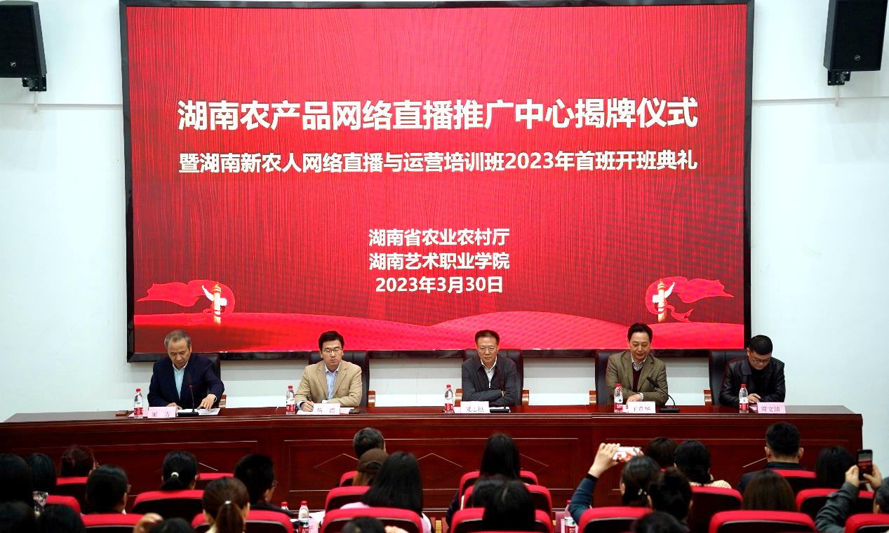 为提升涉农主体市场营销推广能力,服务全省农产品产销对接,促进农业品牌推广。2023年3月30日上午,湖南农产品网络直播推广中心揭牌仪式暨湖南新农人网络直播与运营培训班2023年首班开班典礼,在伟德国际victor1946隆重举行。本次培训由湖南省农业农村厅主办,伟德国际victor1946承办,来自湖南省各市州的农村电商带头人,农产品生产企业线上营销推广人员,市州、县农业农村部门农产品产销对接工作负责人,共106名学员参加了本次活动。