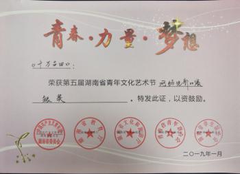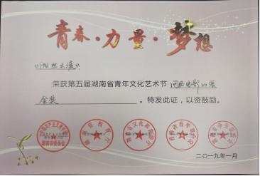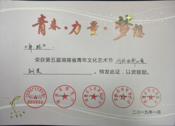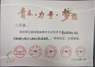 近日获悉,由共青团湖南省委、湖南省教育厅、湖南省文化厅、湖南省青年联合会、湖南省学生联合会联合主办的第五届湖南省青年文化艺术节获奖名单公布,我系师生作品突出重围,《湘丝云渡》斩获金奖、《十万古田》、《破烂王》分别获得电影类和曲艺类银奖、《年轮》获得铜奖,刘振艳老师荣获“最佳指导老师奖”。