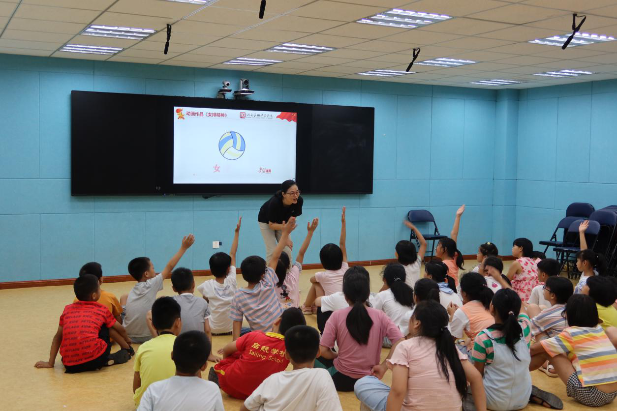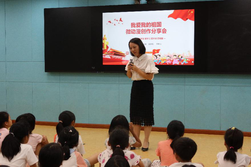 青年教师们以微动漫创作分享会的形式,分别向孩子们展示了学院师生创作的《我们的模样》《十字路口》《中国速度》《女排精神》等优秀动漫作品,在给孩子们讲述感人中国故事的同时,也激发了孩子们我爱我的祖国、为梦想而努力的学习热情。