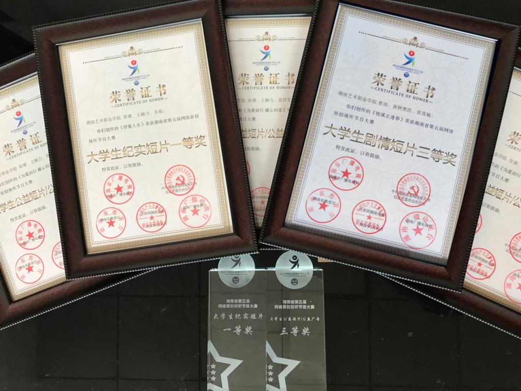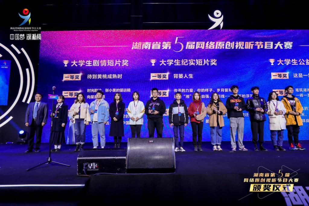 2021年1月15日,湖南省第五届网络原创视听节目大赛颁奖仪式在马栏山创智园举行。经过激烈的角逐,我院影视系张睿、王柳力老师指导,肖萌、黄昱龙、姚文博、张旋等同学创作的纪录片《背篓人生》荣获本届大赛“大学生纪实短片”一等奖,范芳芳、刘锦轩等同学创作的短片《为爱而行 暖心回家》荣获本届大赛“大学生公益短片”三等奖;影视系曹琰老师指导,张霄毓、黄钾奥凯等同学创作的剧情短片《牧溪正逢春》荣获“大学生剧情短片”三等奖。