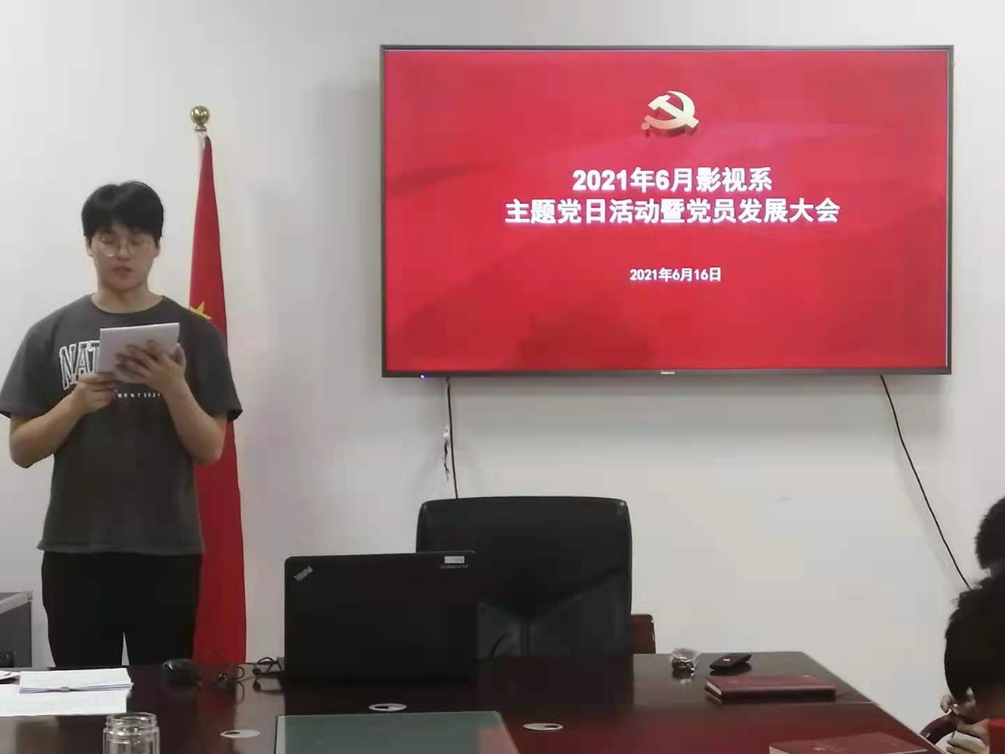 6月16日下午,影视党支部在臻艺楼810会议室举行“学史崇德 知行合一 ”第三次党史专题学习党日活动暨全体党员大会,影视系全体党员参加。学院副院长周文清同志以领导和普通党员的双重身份对活动进行指导,并参加学习。活动由支部副书记张舸同志主持。