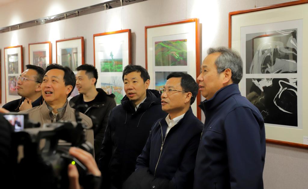 湖南省教育厅领导观看2021届影视系学生摄影作品展。