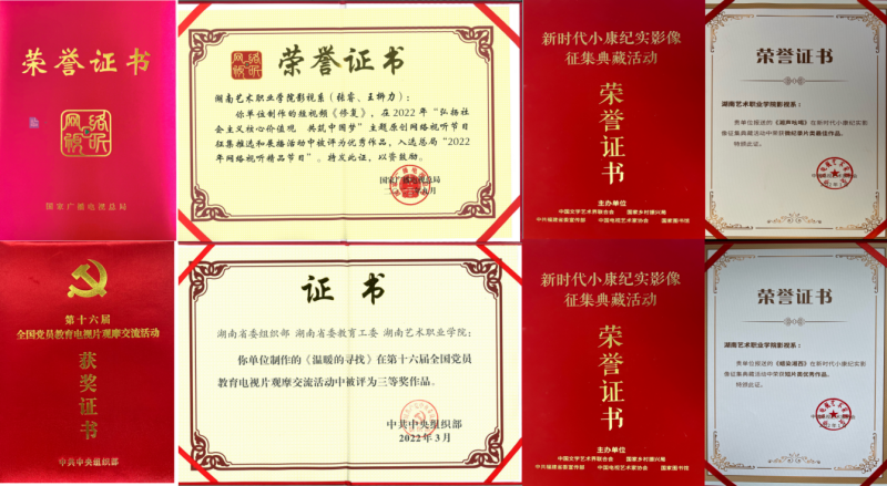 图8 网络视听实践作品荣获国家级、省部级奖项证书(部分)