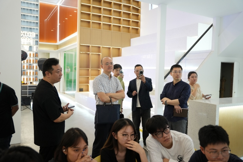 唐振华一行实地考察了学院直播间、安化黑茶直播与视频基地等实训场地,近距离观摩了学生直播实操、数据复盘等真实运营场景,对学院专业设施建设情况、充满活力的学生运营团队及“实训-实战-实效”的育人模式给予高度评价,感慨学院在数字营销人才培养上的专业性与前瞻性。
