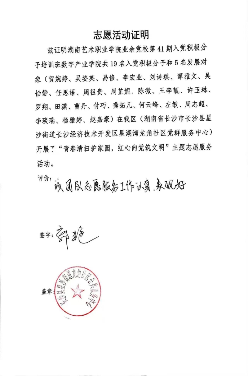 此次志愿服务活动,不仅改善了龙角社区的居住环境,践行了志愿服务精神,更让入党积极分子和发展对象在实践中锤炼了党性、提升了能力。我院始终高度重视入党积极分子和发展对象的培养教育工作,通过开展志愿服务、主题实践等多样化活动,引导广大青年学生在实践中坚定理想信念、强化责任担当,努力成长为有理想、敢担当、能吃苦、肯奋斗的新时代合格共产党员。